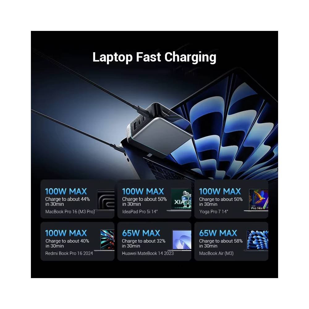 - Compatible con carga rápida de laptops, tablets y smartphones