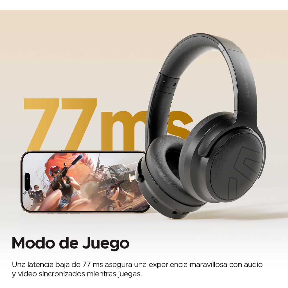 Los Soundpeats Space Pro son una excelente opción en la gama media para quienes buscan audífonos over-ear con gran autonomía y funciones avanzadas. Destacan por su potente cancelación de ruido, sonido envolvente y compatibilidad con audio Hi-Res mediante LDAC, ofreciendo una experiencia muy superior a su precio. Su batería es uno de sus mayores atractivos, ideal para viajes largos o uso intensivo sin preocuparte por recargar. Perfectos para música, trabajo y entretenimiento diario.